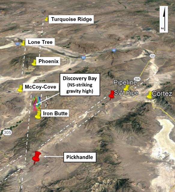 Figure 1: Turquoise Ridge-Battle Mountain-McCoy Cove Structural Trend with Pickhandle location.