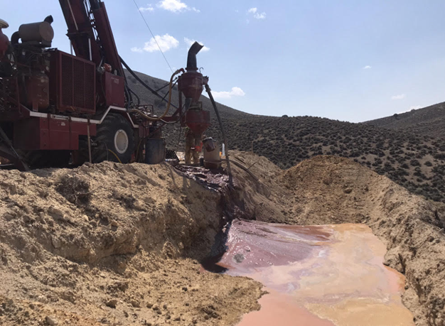 The Pickhandle gold target comprises a small window of Permian Edna Mountain Limestone cut by altered, mineralized dikes. The surface geology, alteration, structural complexity, and geochemical environment are strongly indicative of a “Carlin-type” gold environment. Particularly the pervasive silicification (Jasperoids) and silica-flooded brecciation, superimposed on ferroan dolomite, are especially encouraging (see Figure 3). Gold values from rock chip sampling reached up to 1.5 g/t Au. It is particularly significant that the Pickhandle prospect area has never been drilled and shows no evidence of having been prospected in recent times. NV Gold has completed 4 RC (“reverse circulation”) holes totaling 872.8 meters (2,765 feet). All drill holes intercepted extensive oxidation for several hundreds of feet with weak anomalous Au and trace element geochemistry. The first hole, PH-1, entered a carbon-rich chert unit starting at 745 feet until the end of the hole at 860 feet. This run of 115 feet is continuously containing anomalous gold (10+ ppb) with moderate to locally strong associated pathfinder metals, including selenium up to 17.7 ppm (see Figure 4). The highest gold value encountered during this drilling campaign reached 71 ppb.