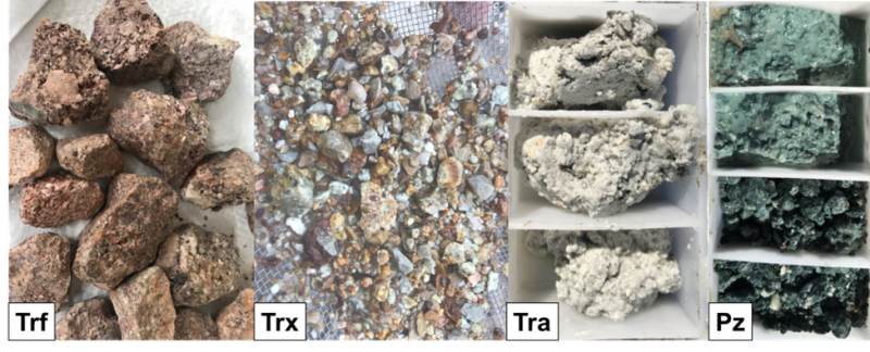 Figure 2 - Rock types at Slumber (Trf and Trx are the main host rocks for gold, while Tra can be weakly gold anomalous, and Pz is mostly barren).