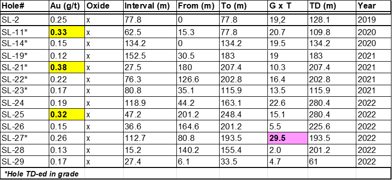 Table 1 – Slumber 2019-2022 significant drill intercepts.